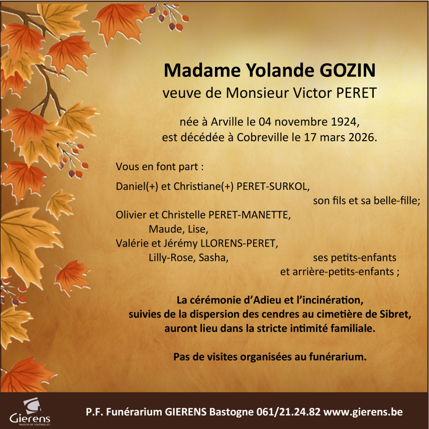 Décédée à Vaux-sur-Sure (6640) le mardi 17 mars 2026 à l'âge de 101 ans