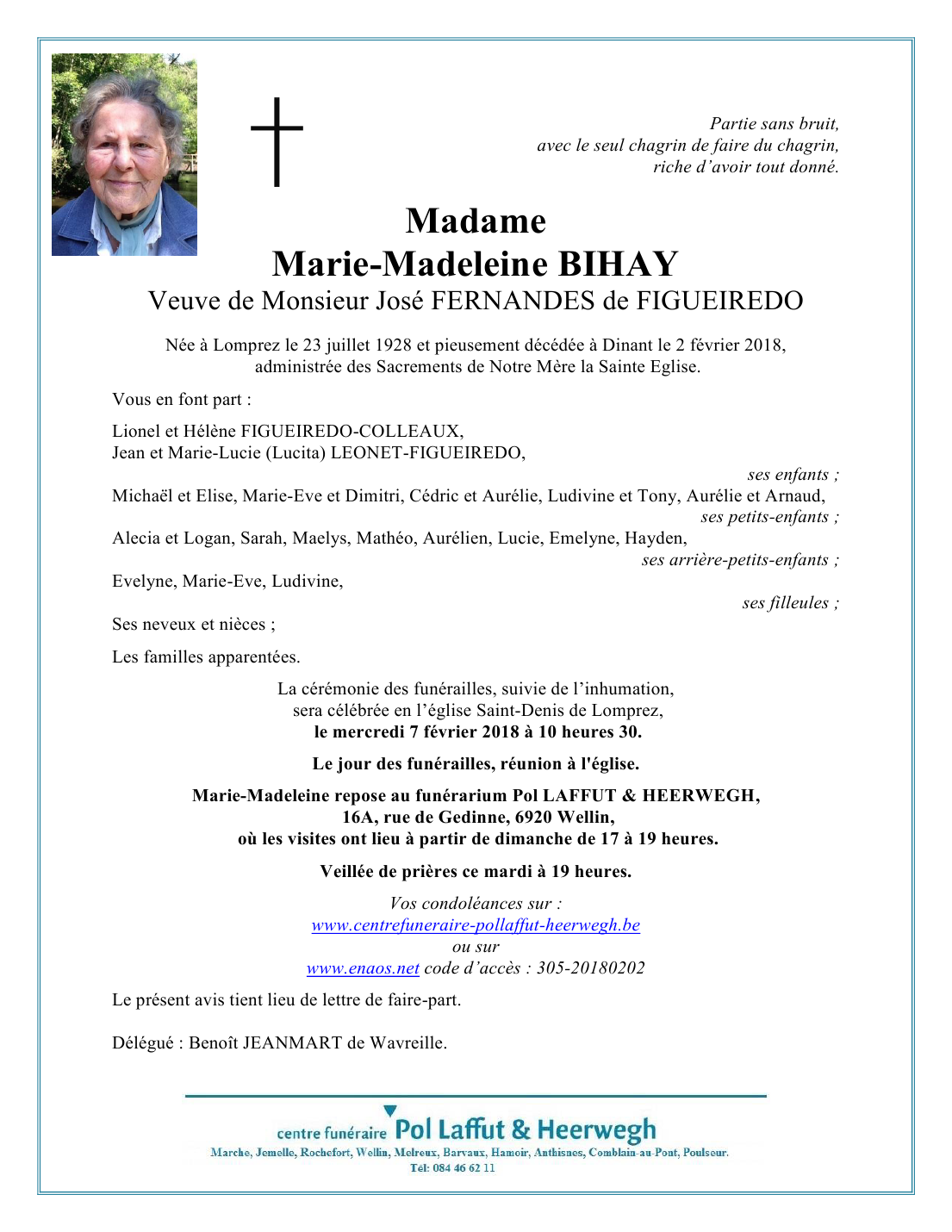 Décédée à Dinant (5500) le vendredi 2 février 2018 à l'âge de 89 ans