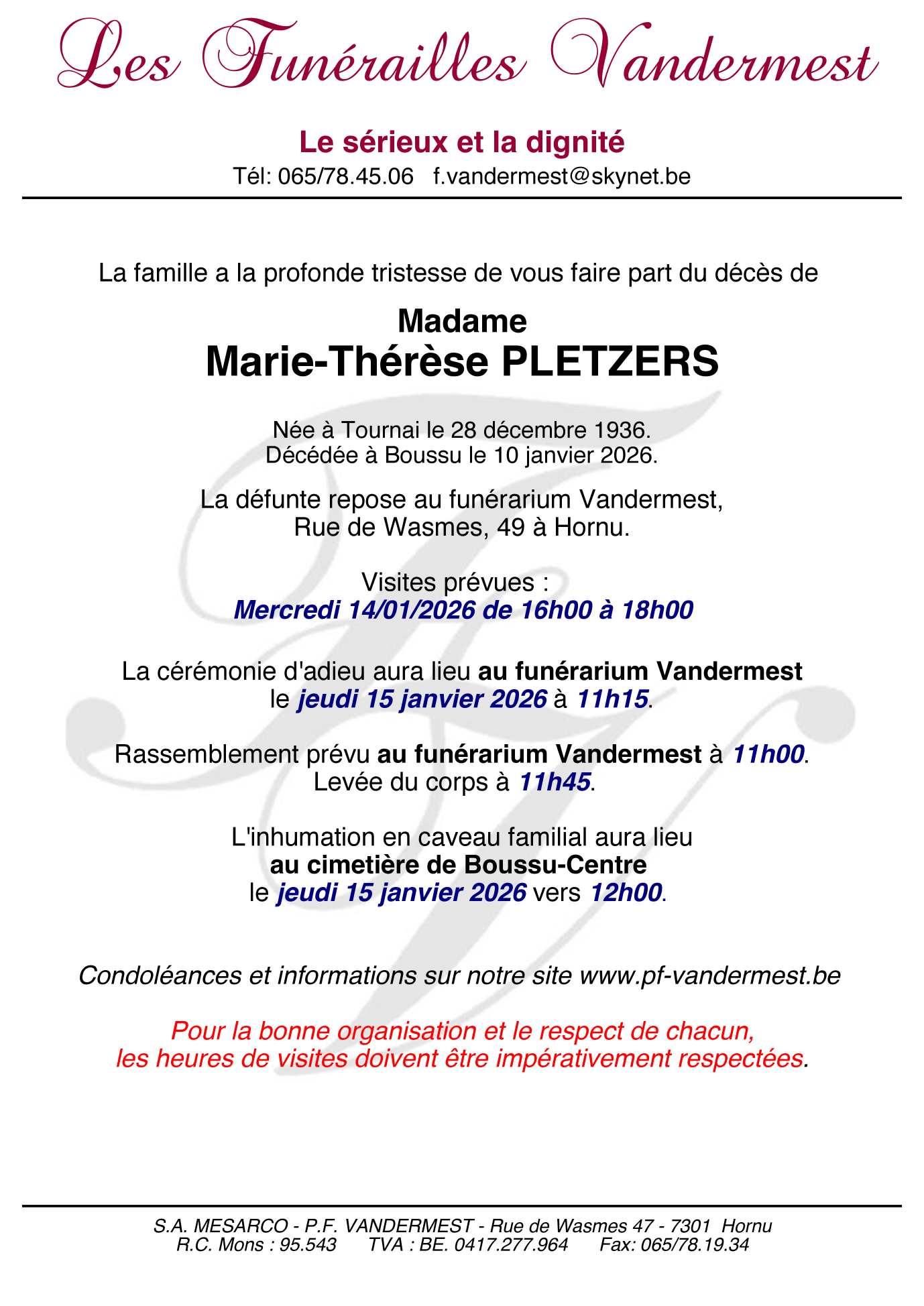 Madame Marie-Thérèse PLETZERS