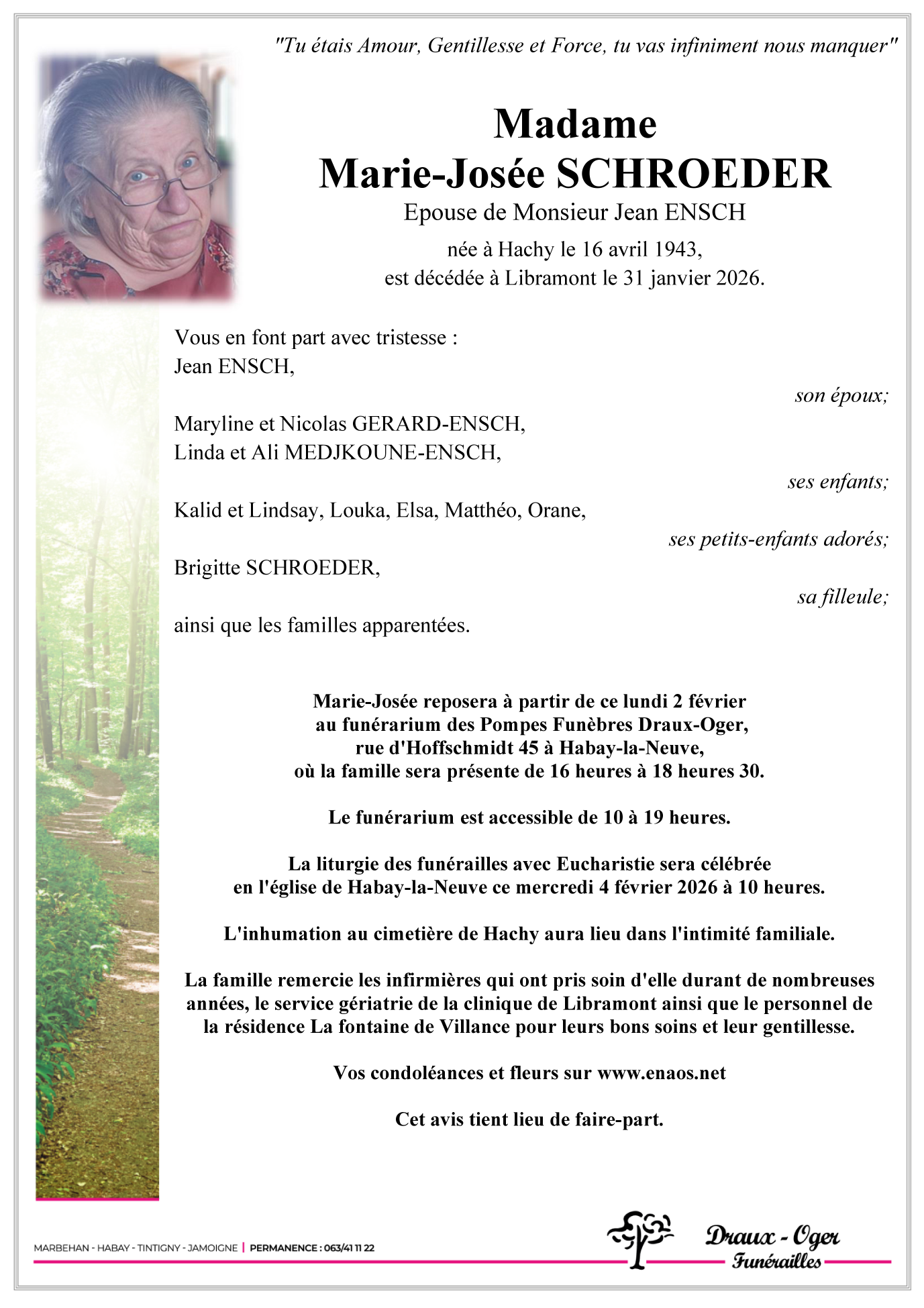 Fallecida en Libramont-Chevigny (6800) el sábado, 31 de enero de 2026 a la edad de 82 años