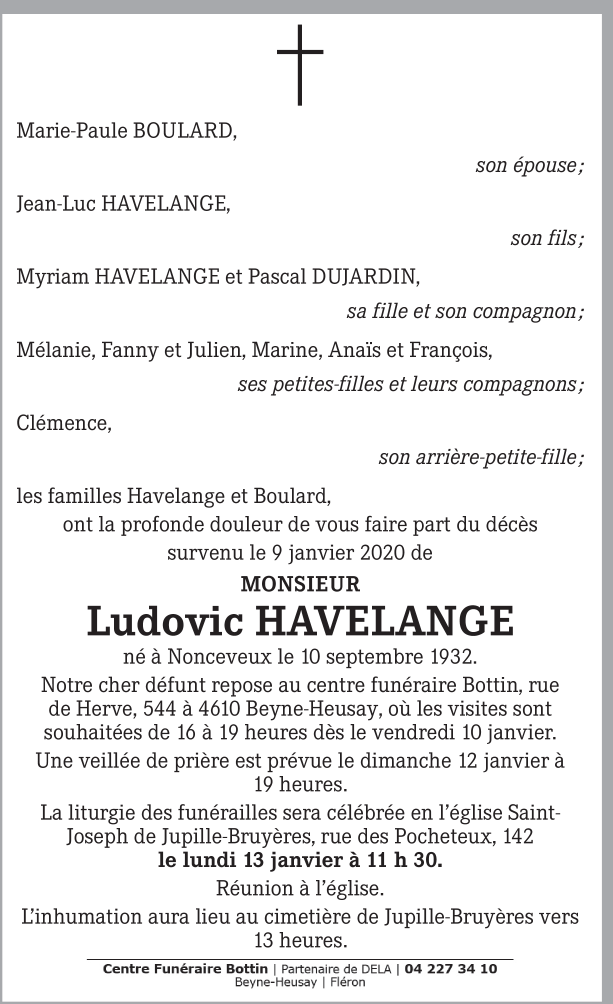 Died in Chênée (4032) on 09 January 2020 at the age of 87 years