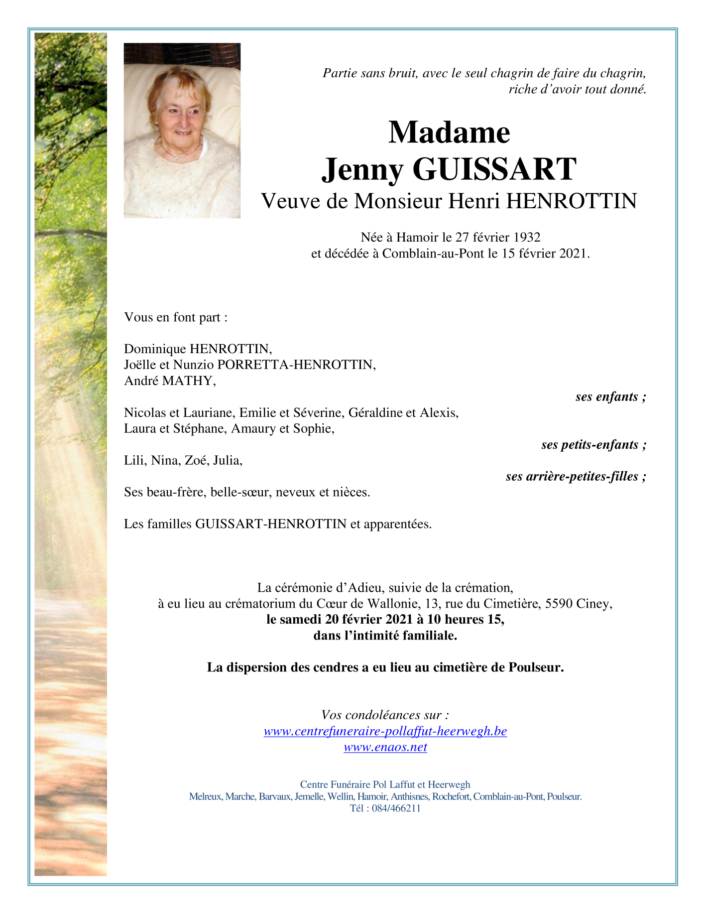 Died in Comblain-au-Pont (4170) on 15 February 2021 at the age of 88 years