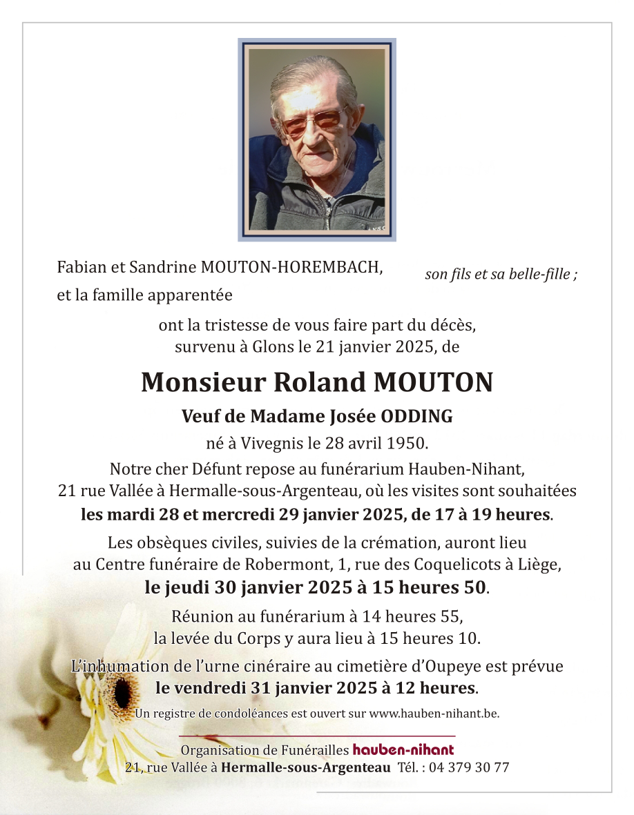 Décédé à Glons (4690) le mardi 21 janvier 2025 à l'âge de 74 ans