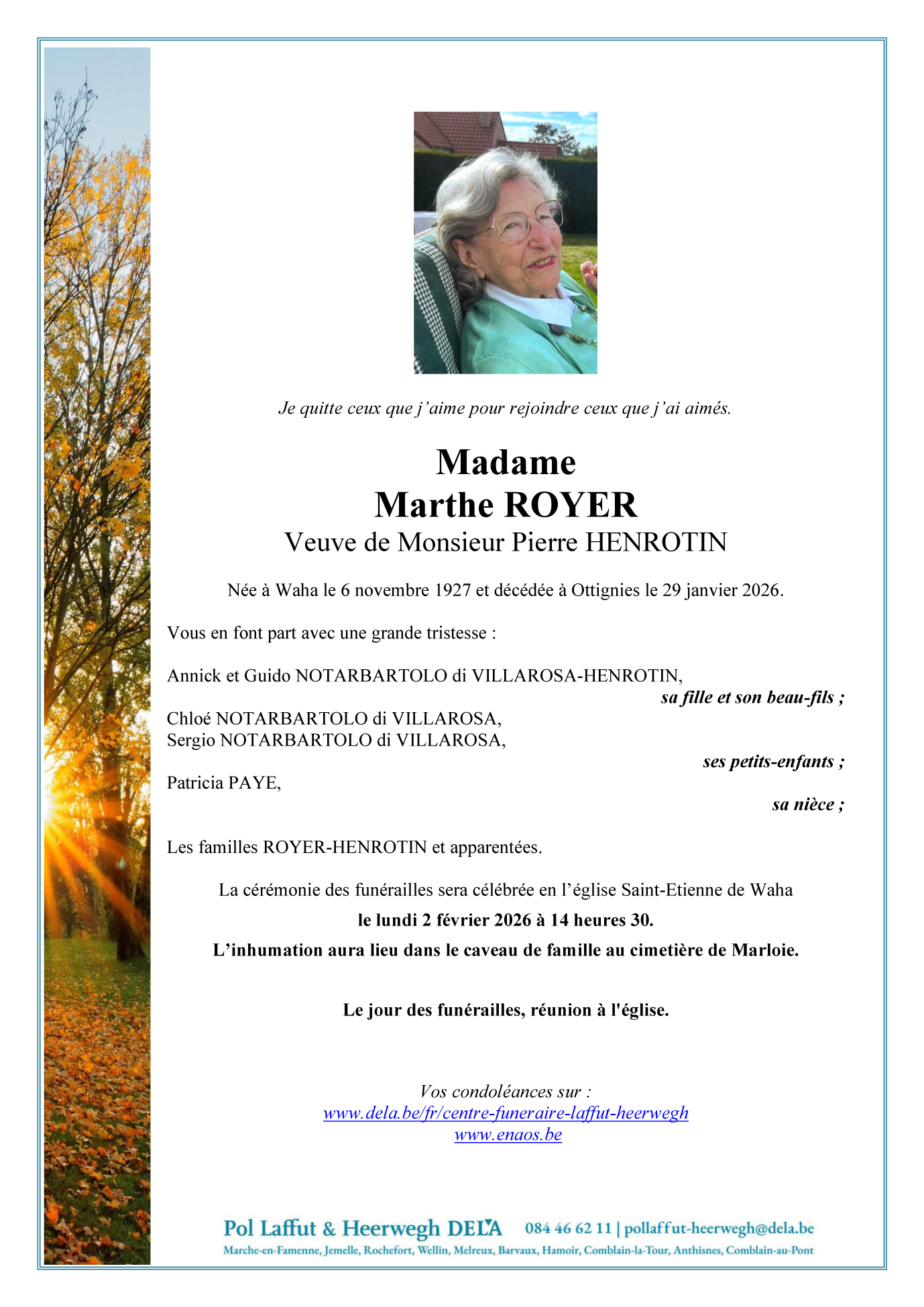 Died in Ottignies (1340) on 29 January 2026 at the age of 98 years