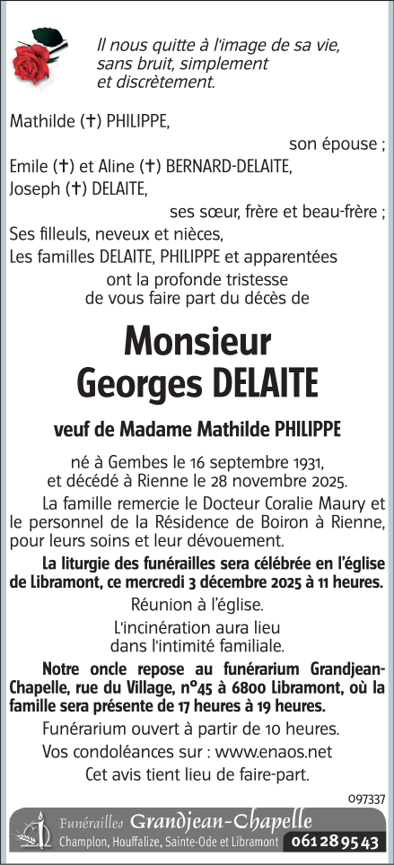 Died in Rienne (5575) on 28 November 2025 at the age of 94 years