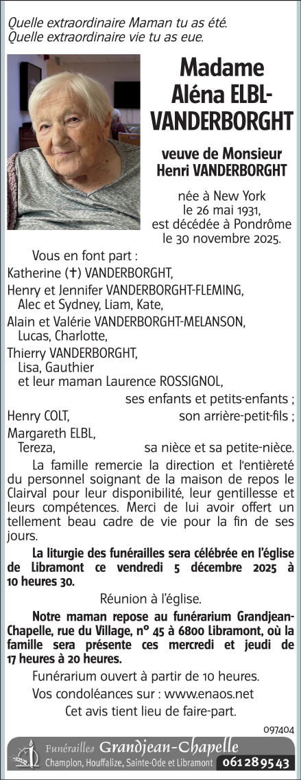 Overleden te Pondrôme (5574) op zondag 30 november 2025 op 94-jarige leeftijd