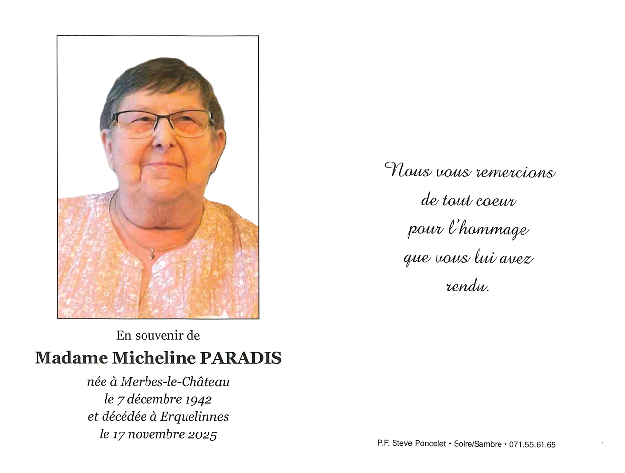 Fallecida en Erquelinnes (6560) el lunes, 17 de noviembre de 2025 a la edad de 82 años