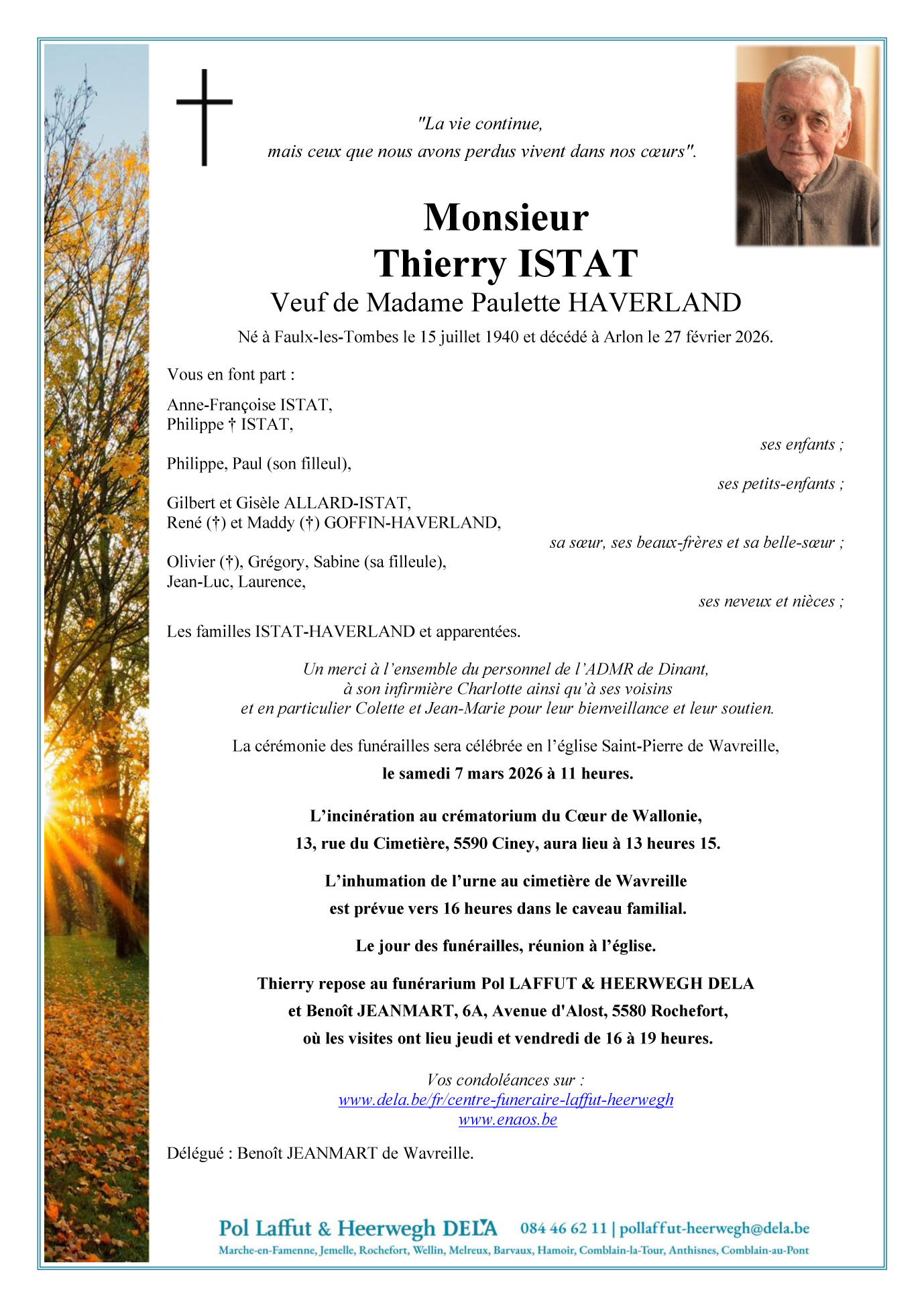 Nacido en Faulx-les-Tombes (5340) el lunes, 15 de julio de 1940