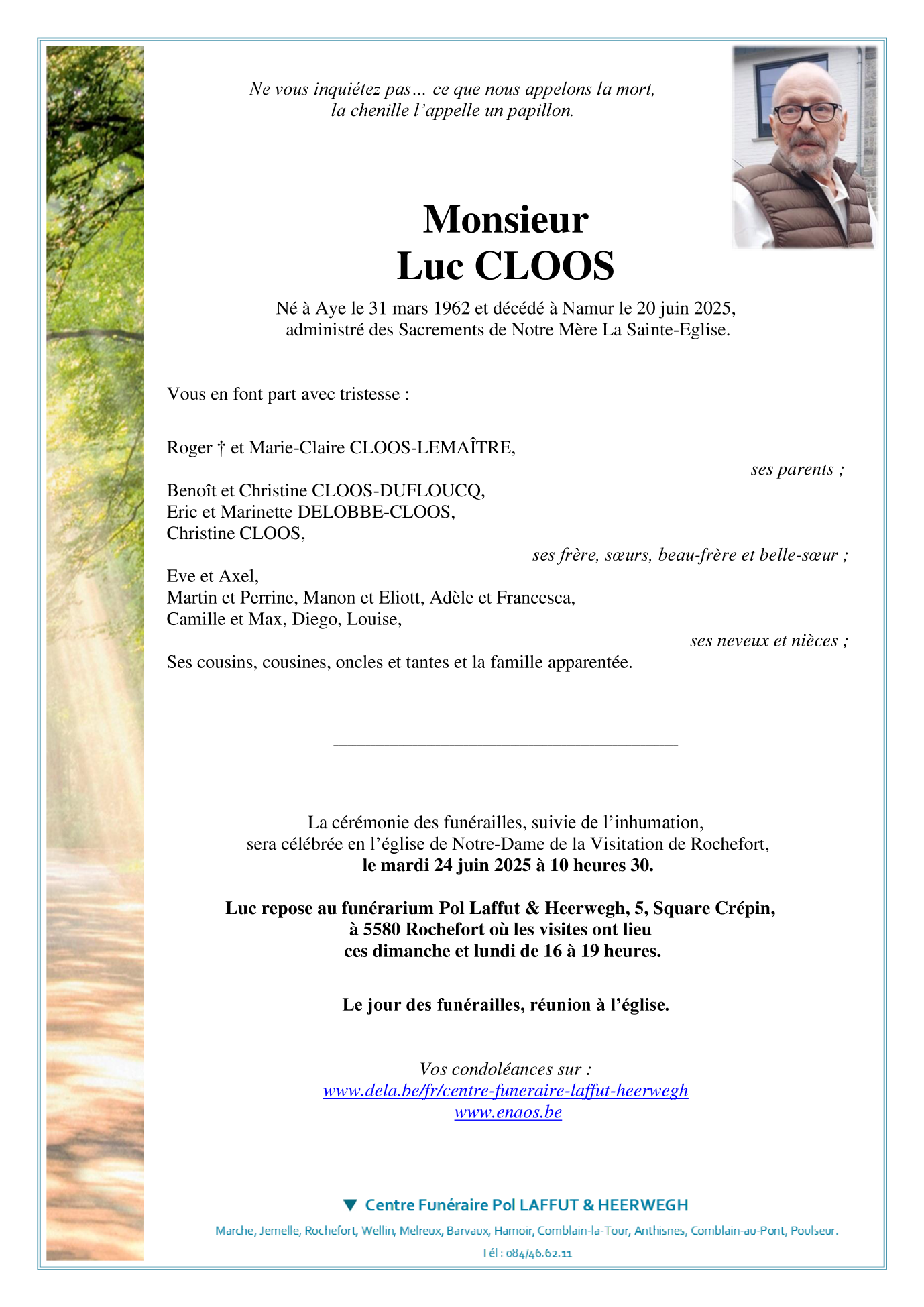 Overleden te Namur (5000) op vrijdag 20 juni 2025 op 63-jarige leeftijd