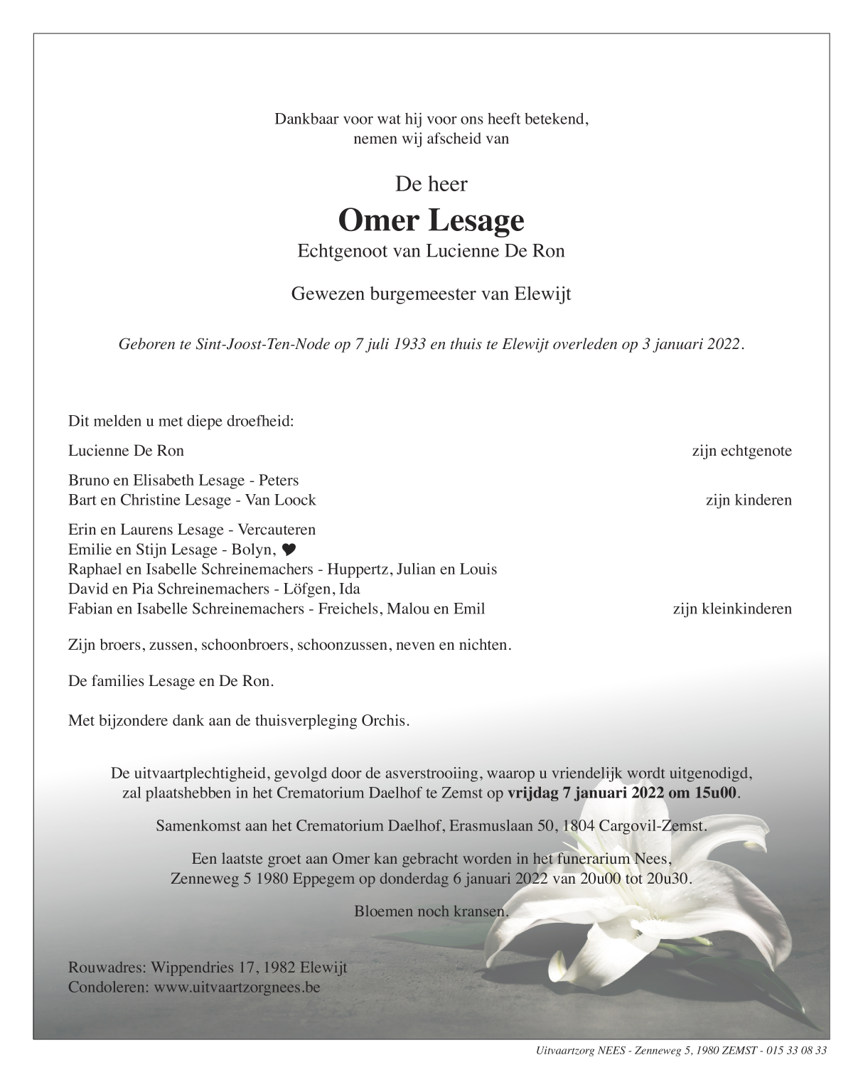 Overleden te Elewijt (1982) op maandag 3 januari 2022 op 88-jarige leeftijd