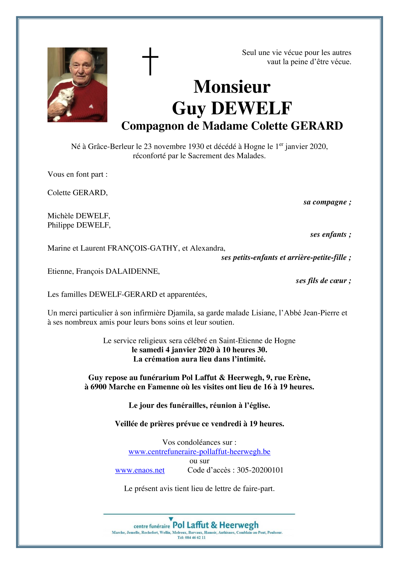 Fallecido en Hogne (5377) el miércoles, 1 de enero de 2020 a la edad de 89 años