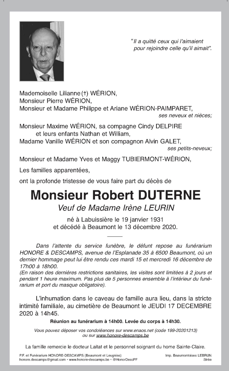 Overleden te Beaumont (6500) op zondag 13 december 2020 op 89-jarige leeftijd