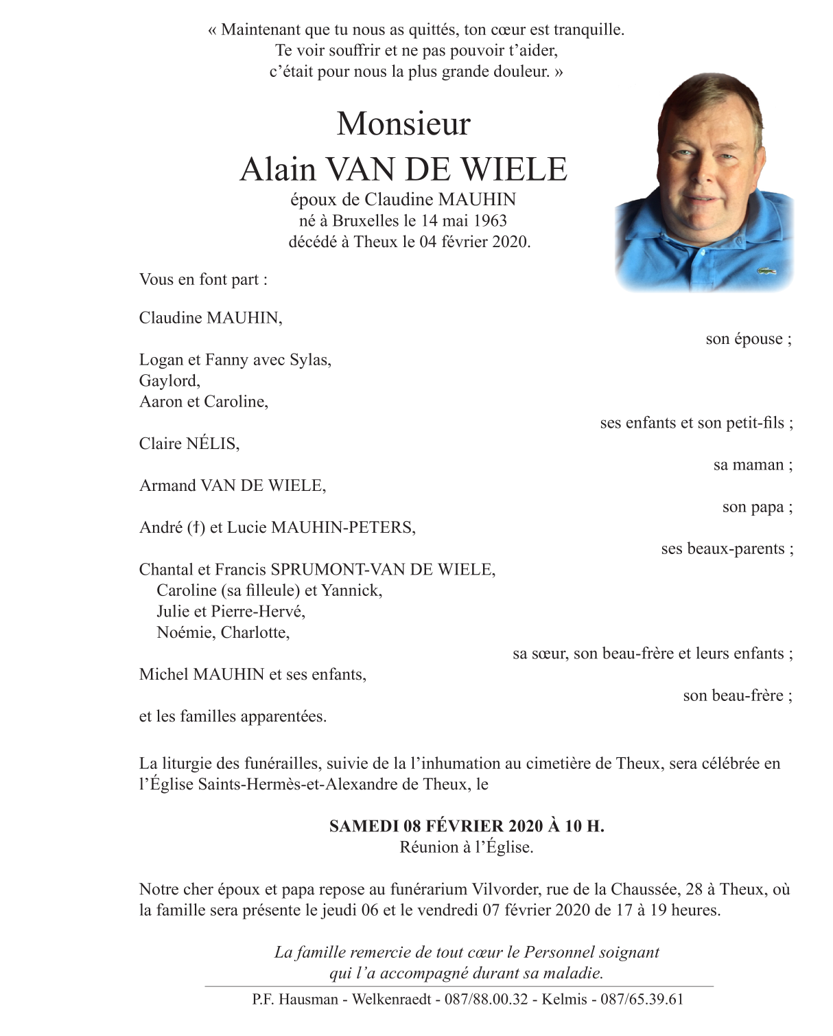 Fallecido en Theux (4910) el martes, 4 de febrero de 2020 a la edad de 56 años