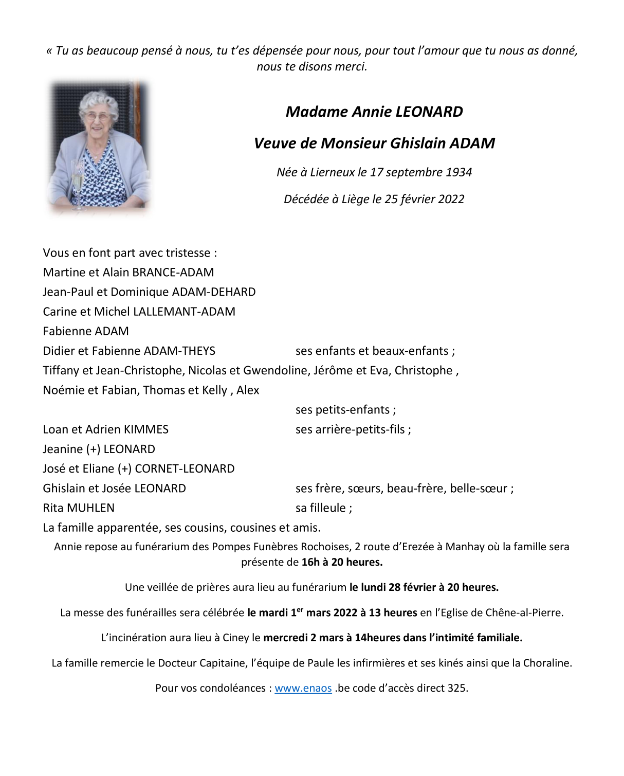 Veuf de Monsieur Ghislain Adam