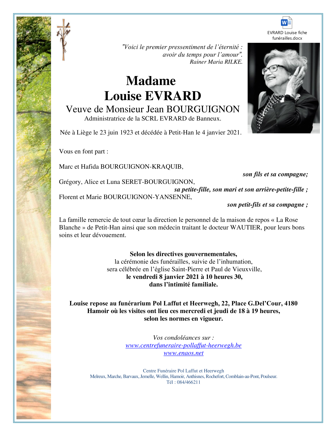 Overleden te Petit-Han (6940) op dinsdag 5 januari 2021 op 97-jarige leeftijd