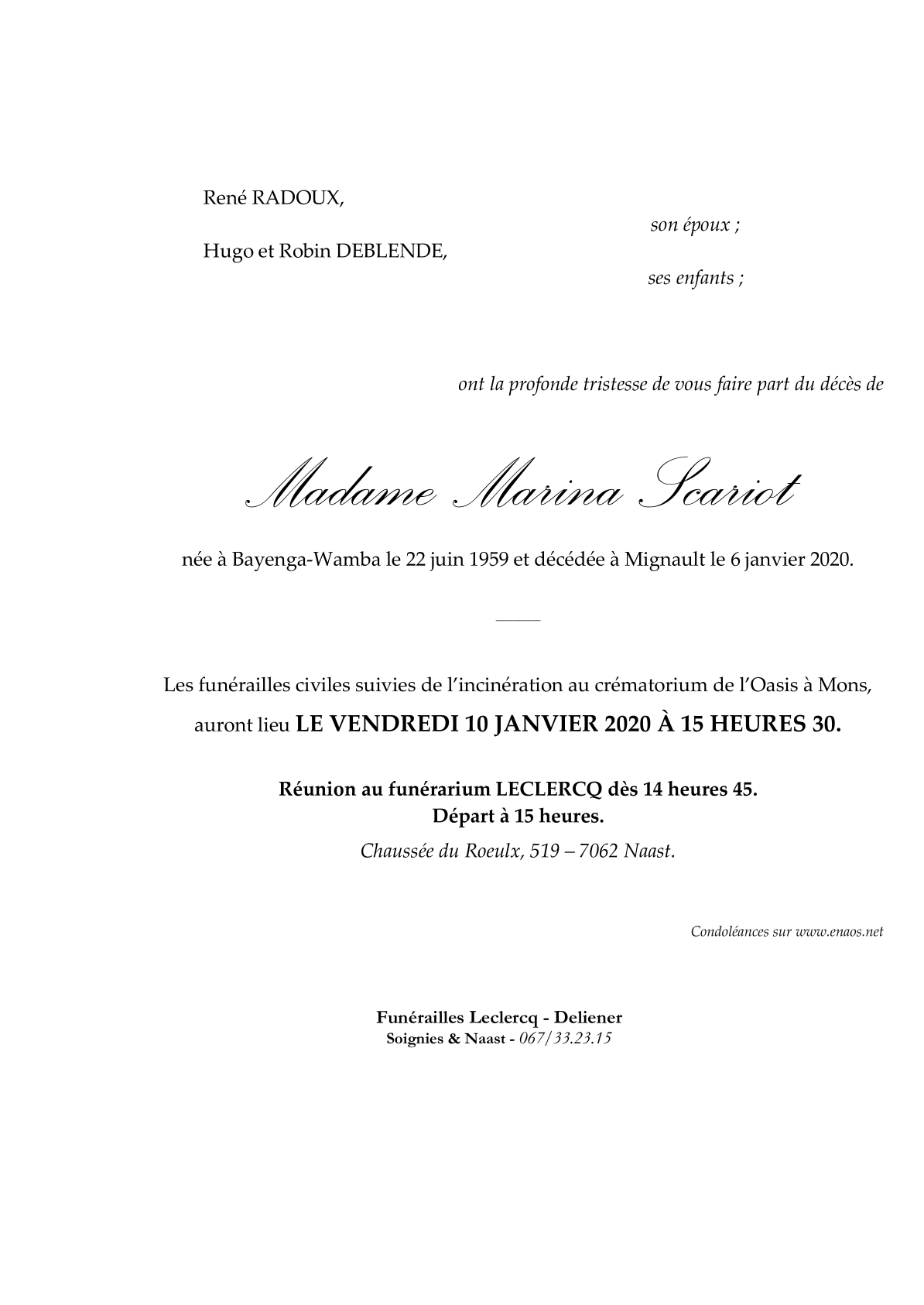 Overleden te Mignault (7070) op maandag 6 januari 2020 op 60-jarige leeftijd