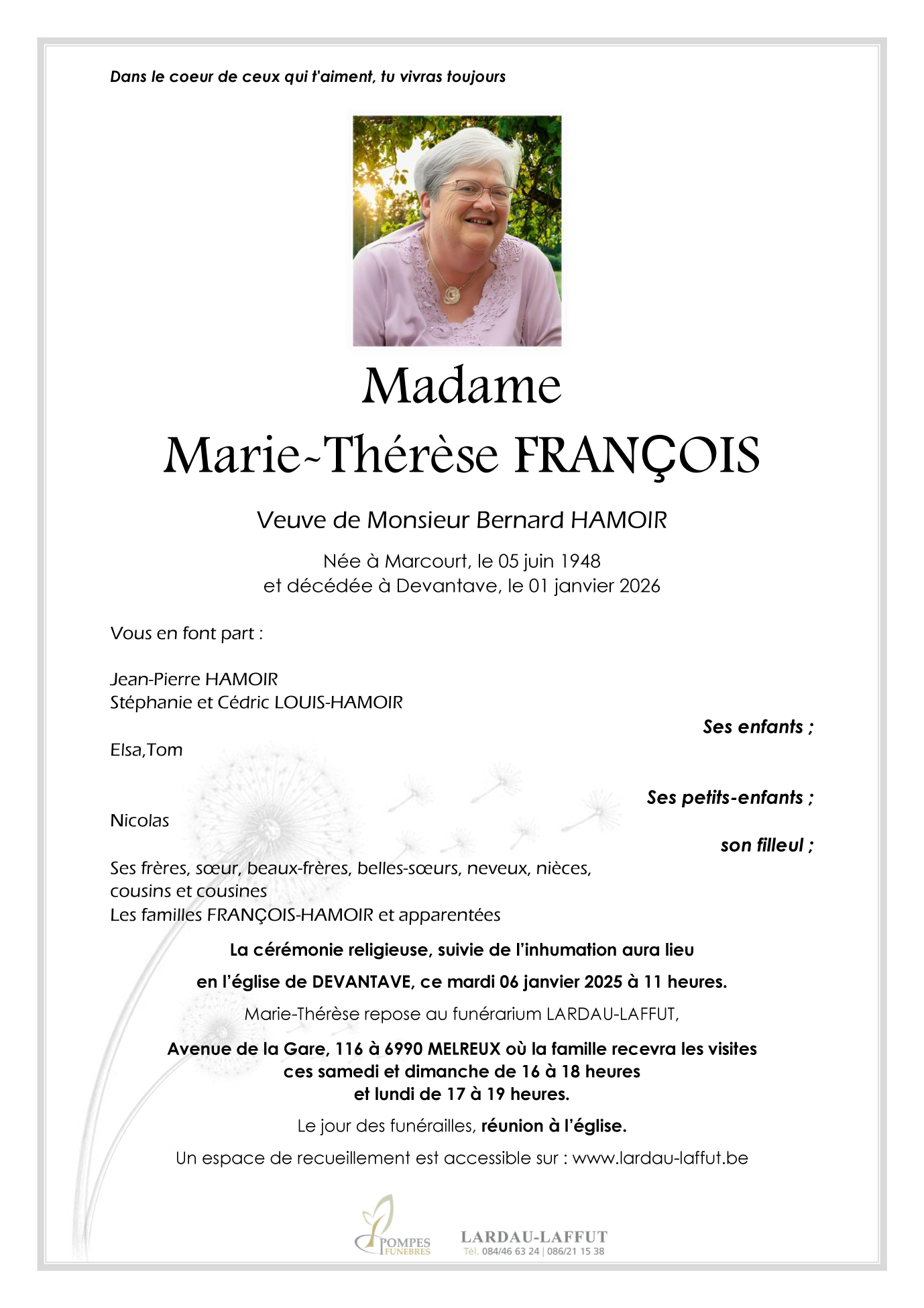 Overleden te Devantave (6987) op donderdag 1 januari 2026 op 77-jarige leeftijd