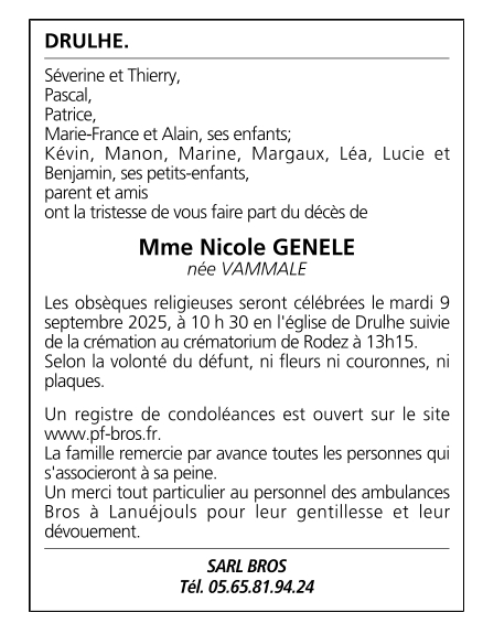 Veuve de Monsieur Jean-Claude GENELE