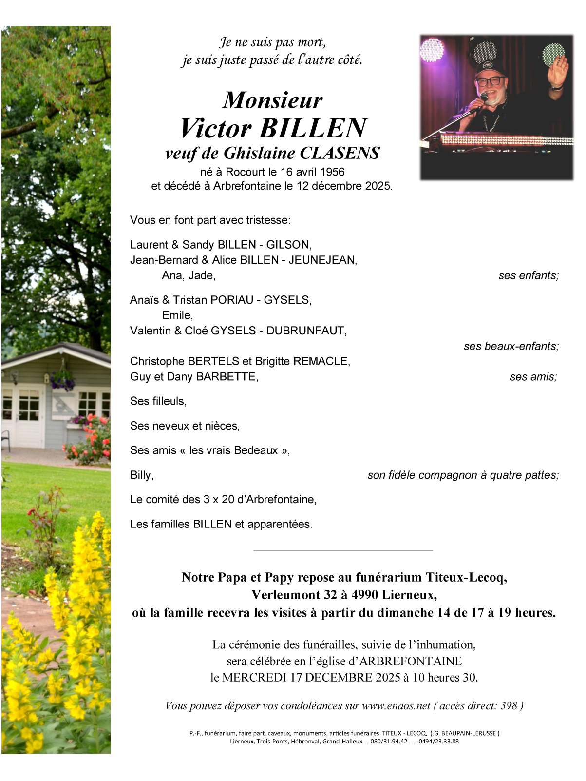 Décédé à Arbrefontaine (4990) le vendredi 12 décembre 2025 à l'âge de 69 ans