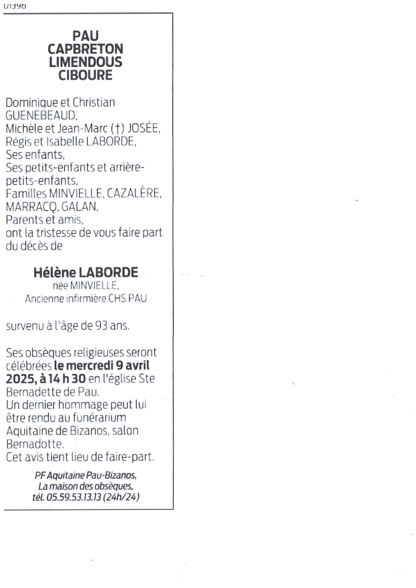 Décédée à Pau (64000, France) le samedi 5 avril 2025 à l'âge de 93 ans