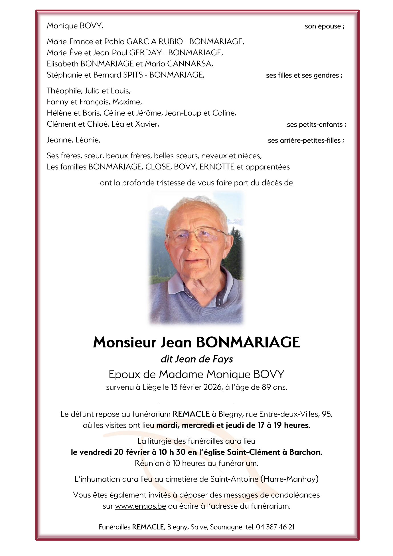 Monsieur Jean BONMARIAGE