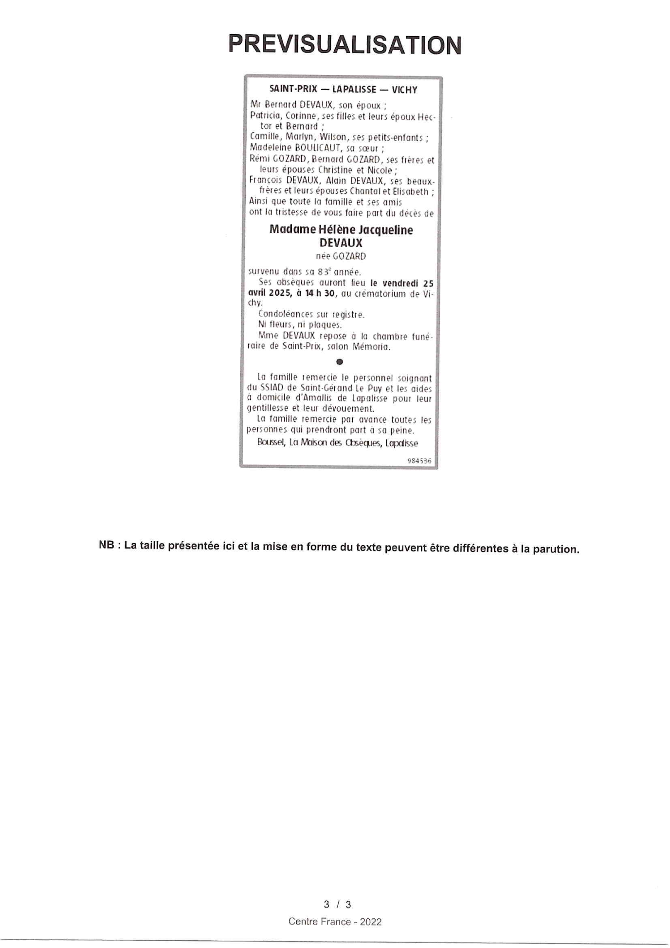 Fallecida en Saint-Prix (03120, Francia) el jueves, 17 de abril de 2025 a la edad de 82 años