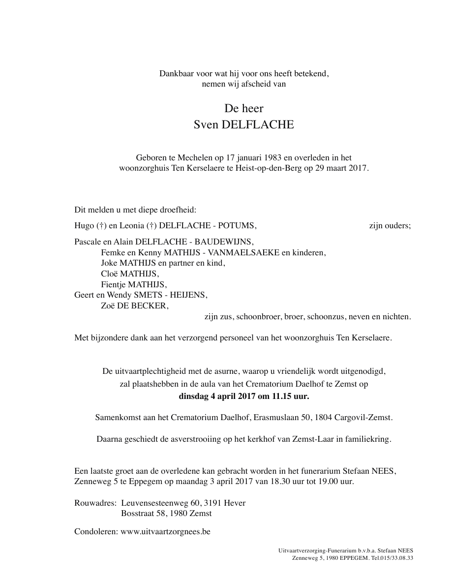 Overleden te Heist-op-den-Berg (2220) op woensdag 29 maart 2017 op 34-jarige leeftijd