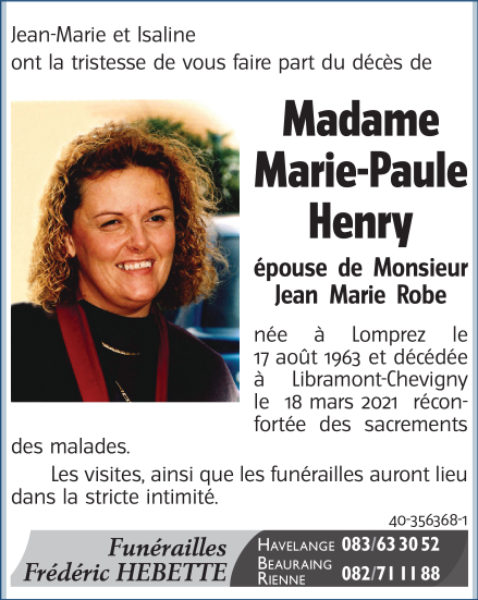 Died in Libramont-Chevigny (6800) on 18 March 2021 at the age of 57 years