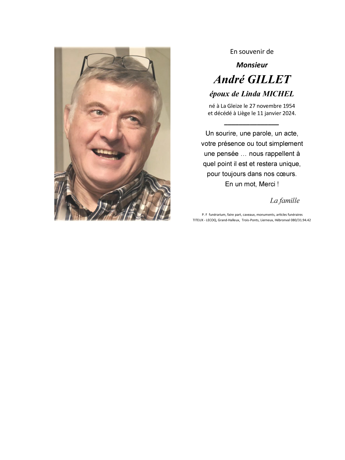 Monsieur André GILLET, époux de Linda MICHEL