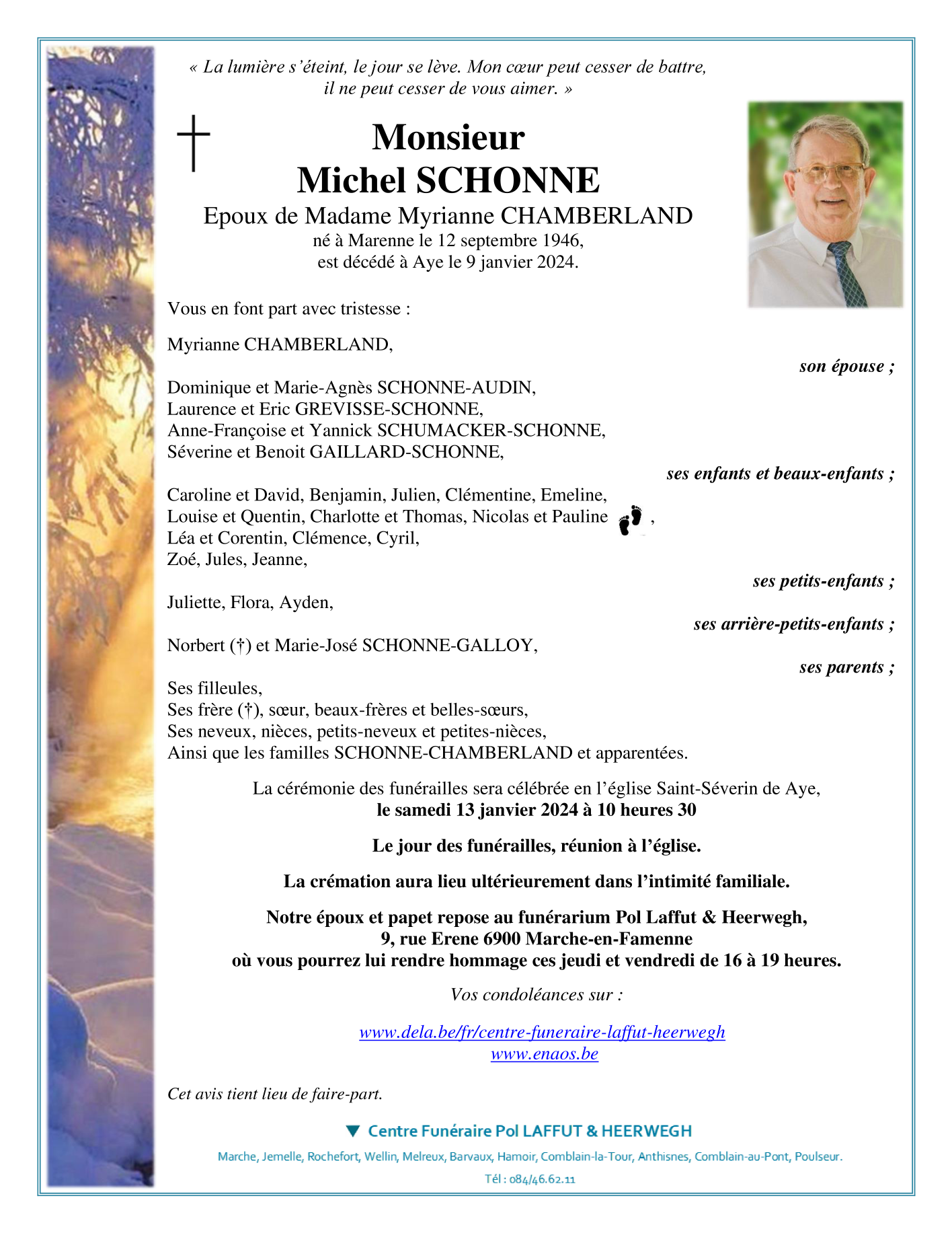 Overleden te Aye (6900) op dinsdag 9 januari 2024 op 77-jarige leeftijd