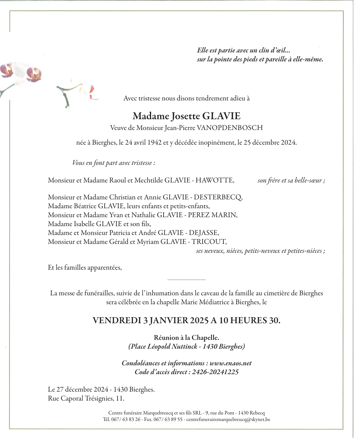 Died in Bierghes (1430) on 25 December 2024 at the age of 82 years