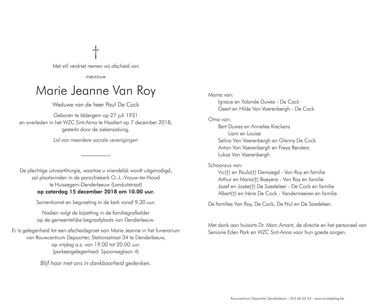 Mevrouw Marie Jeanne Van Roy