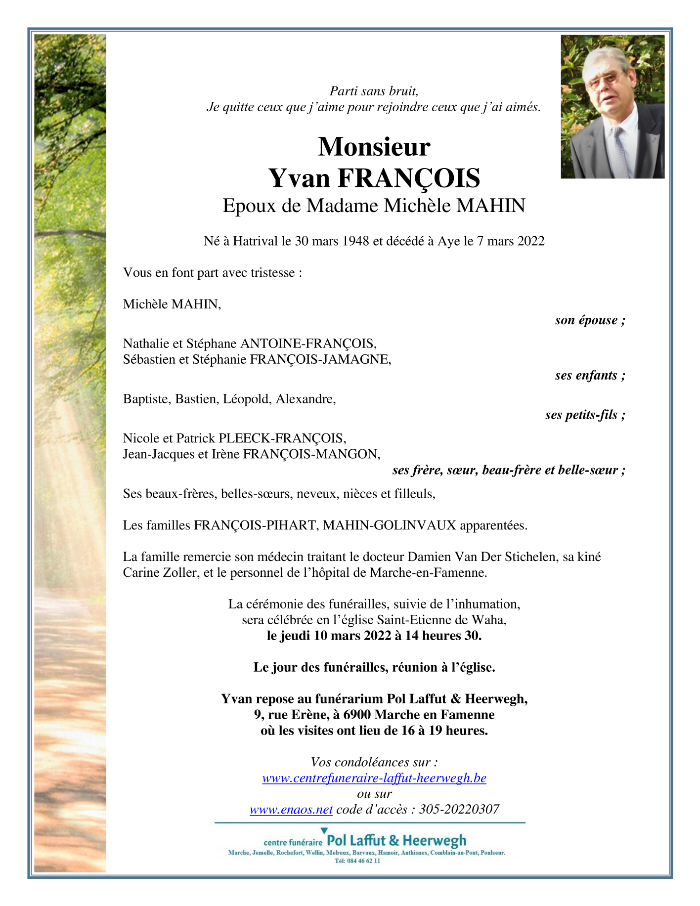 Died in Aye (6900) on 07 March 2022 at the age of 73 years