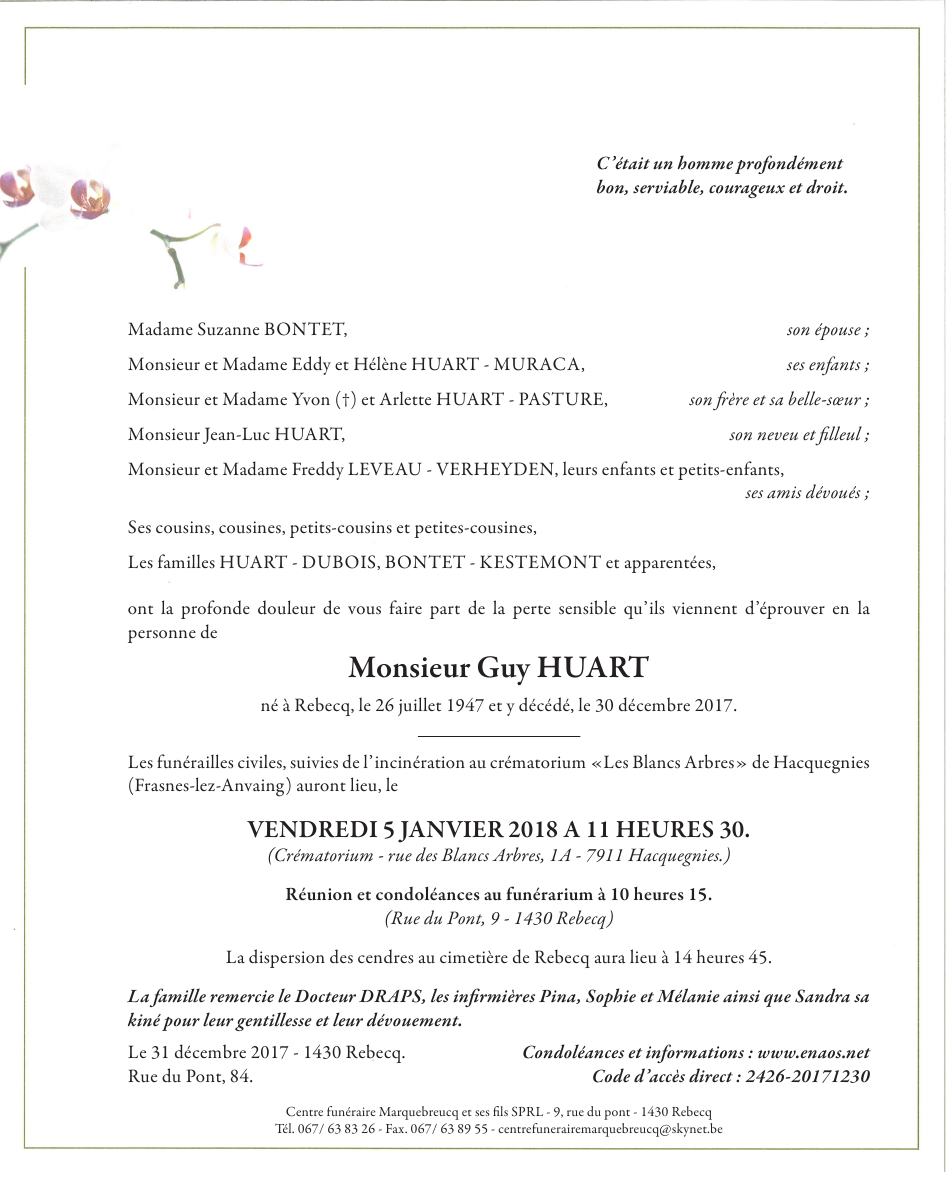 Overleden te Rebecq (1430) op zaterdag 30 december 2017 op 70-jarige leeftijd