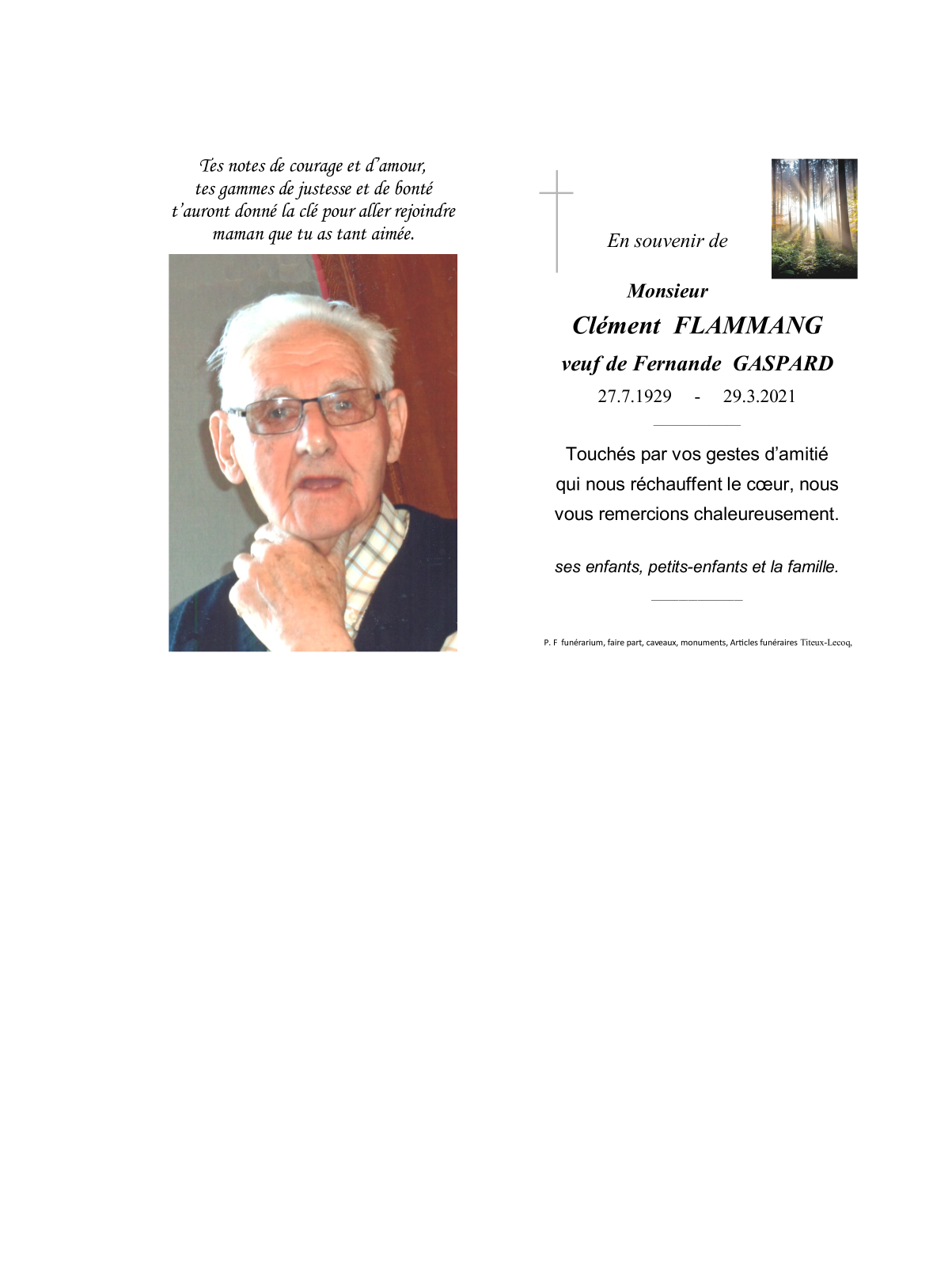 Veuf de Madame Fernande GASPARD