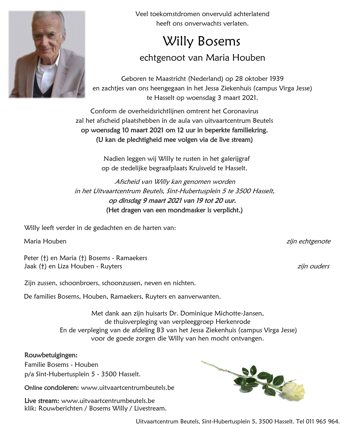 Died in Hasselt (3500) on 03 March 2021 at the age of 81 years