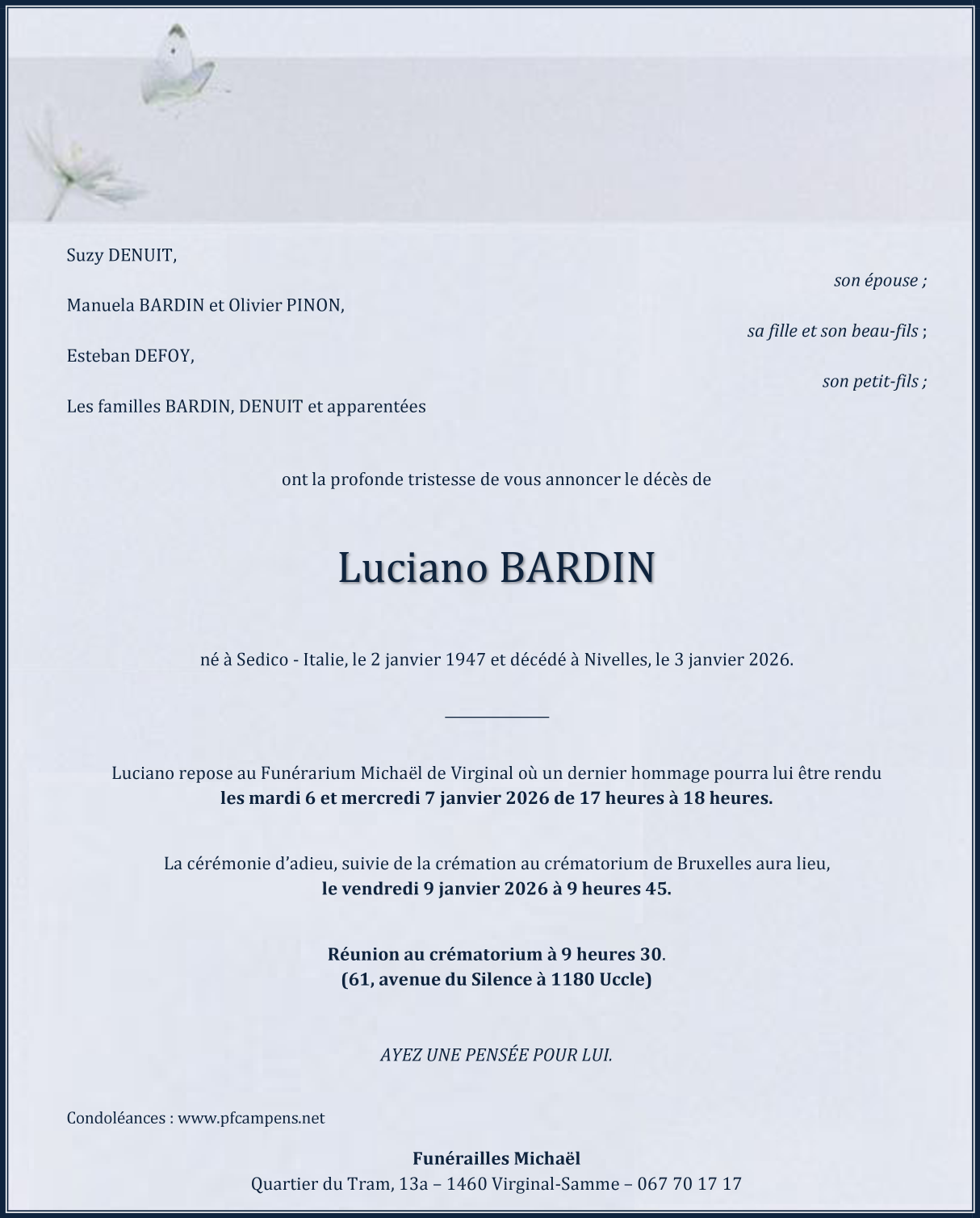Décédé à Nivelles (1400) le samedi 3 janvier 2026 à l'âge de 79 ans