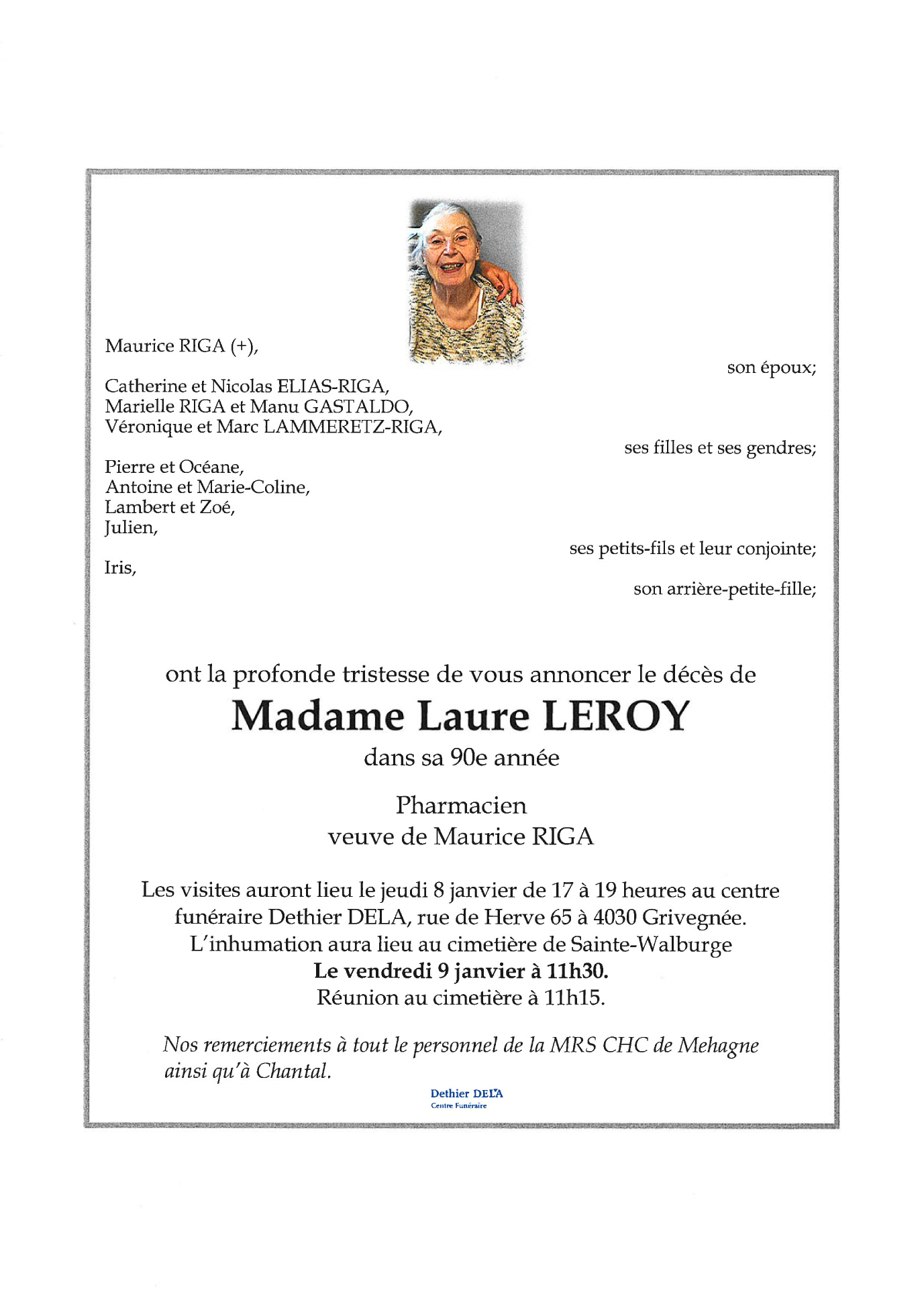 Décédée à Embourg (4053) le dimanche 4 janvier 2026 à l'âge de 89 ans
