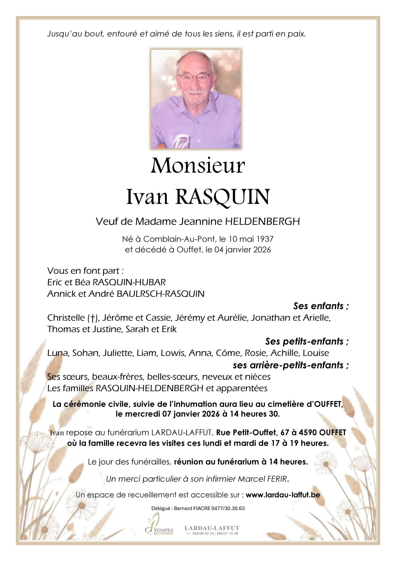 Décédé à Ouffet (4590) le dimanche 4 janvier 2026 à l'âge de 88 ans