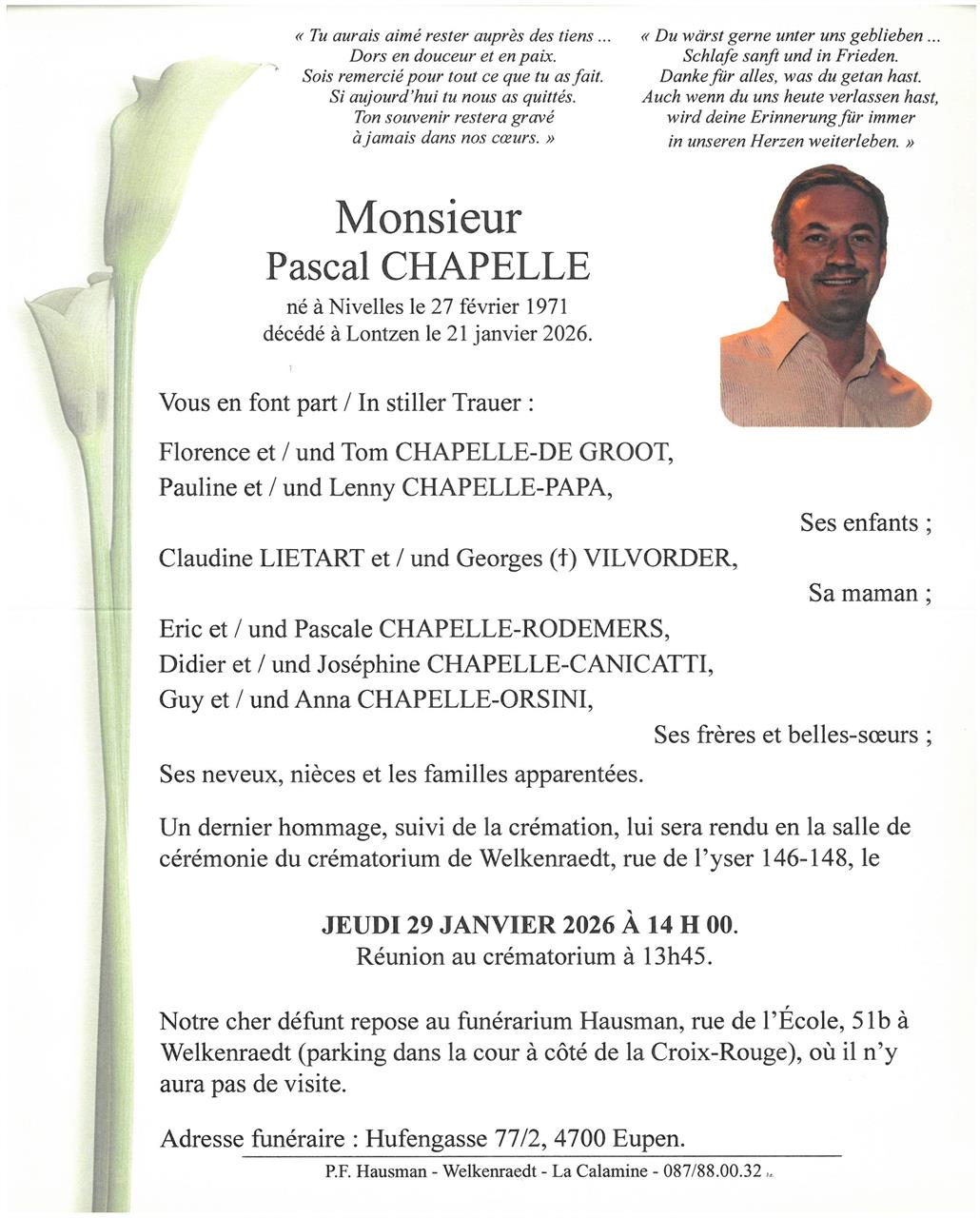 Décédé à Herbesthal (4710) le mercredi 21 janvier 2026 à l'âge de 54 ans