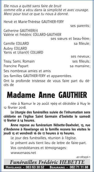 Overleden te Huy (4500) op maandag 12 februari 2018 op 48-jarige leeftijd
