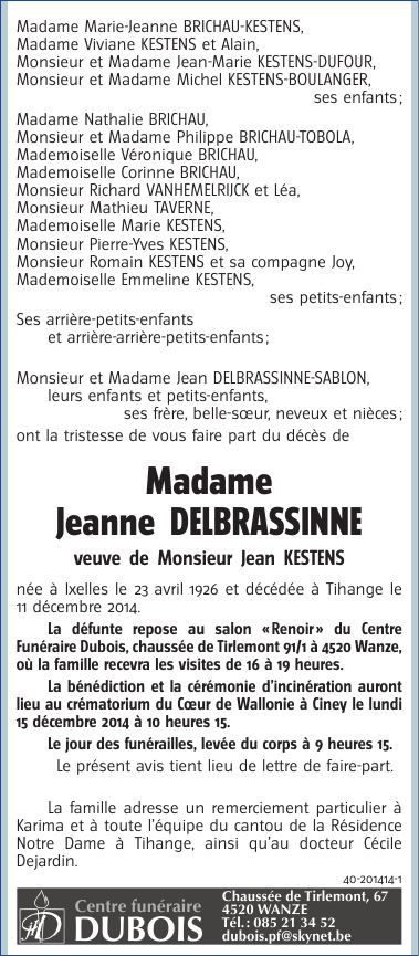 Veuve de Monsieur Jean Kestens