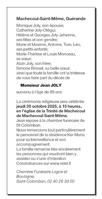 Overleden te La Limouzinière (44310, Frankrijk) op maandag 27 oktober 2025 op 89-jarige leeftijd