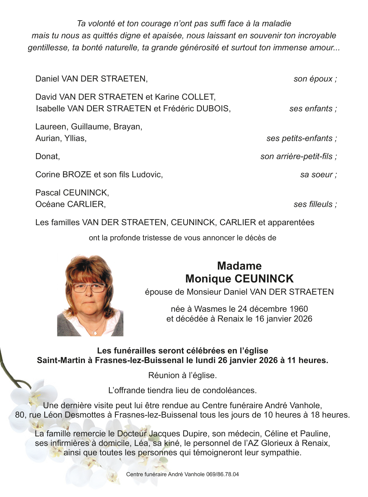 Overleden te Renaix (9600) op vrijdag 16 januari 2026 op 65-jarige leeftijd