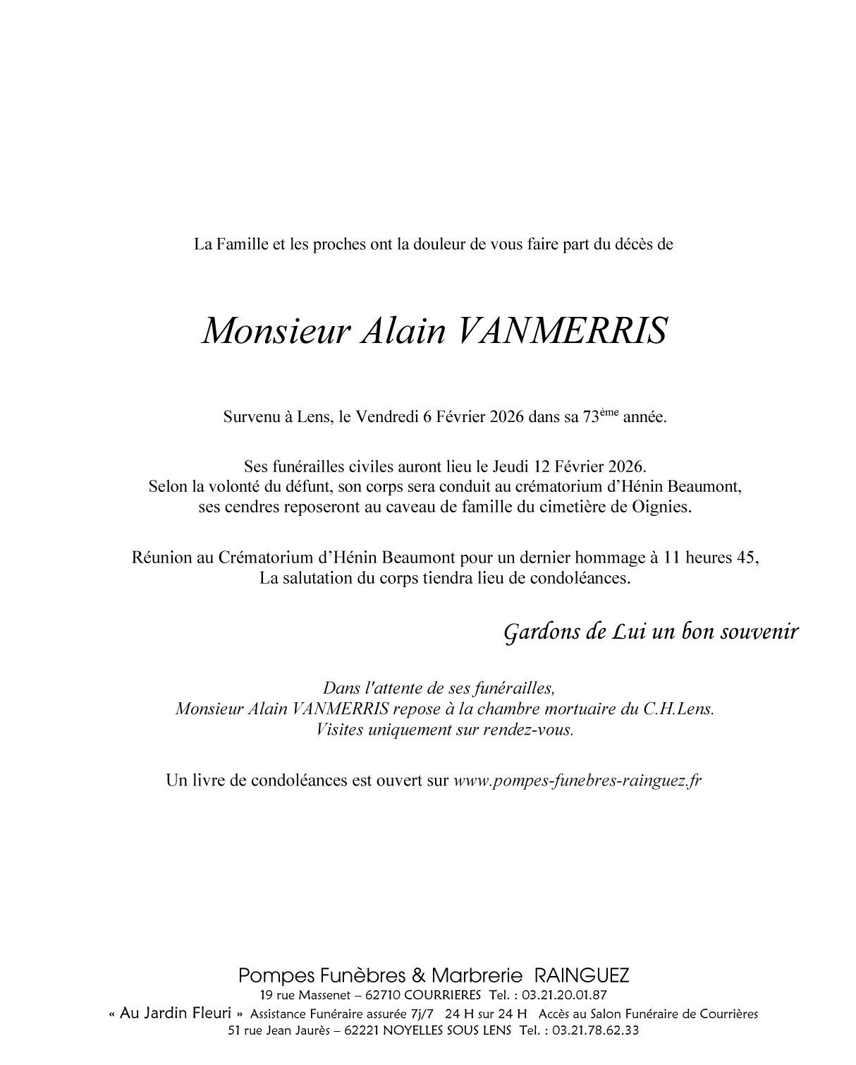 Monsieur Alain VANMERRIS