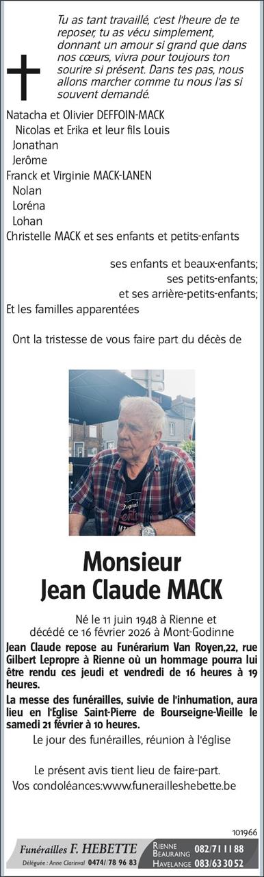 Overleden te Mont-Godinne (5530) op maandag 16 februari 2026 op 77-jarige leeftijd