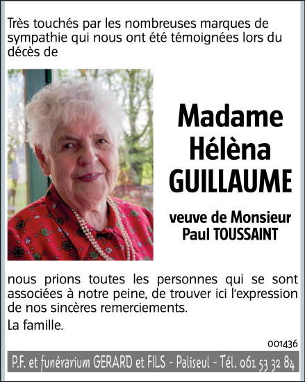 Viuda de Monsieur Paul TOUSSAINT