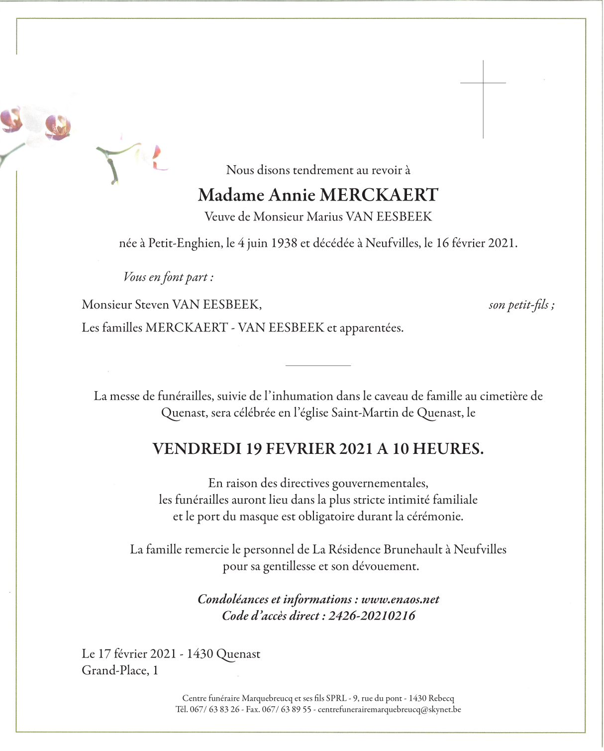 Overleden te Neufvilles (7063) op dinsdag 16 februari 2021 op 82-jarige leeftijd