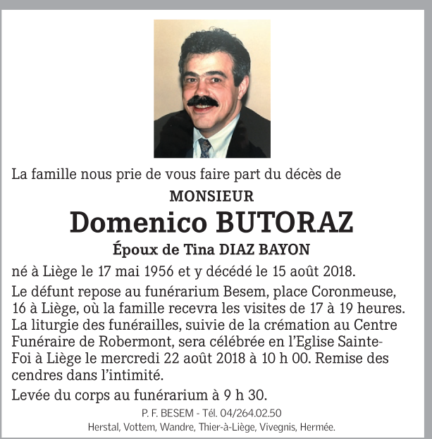 Décédé à Liège (4000) le mercredi 15 août 2018 à l'âge de 62 ans