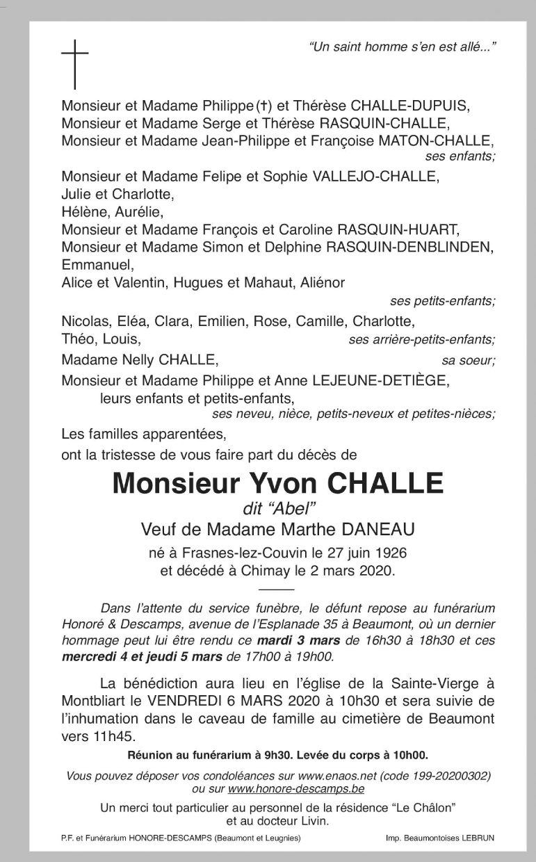 Monsieur Yvon (dit Abel) CHALLE